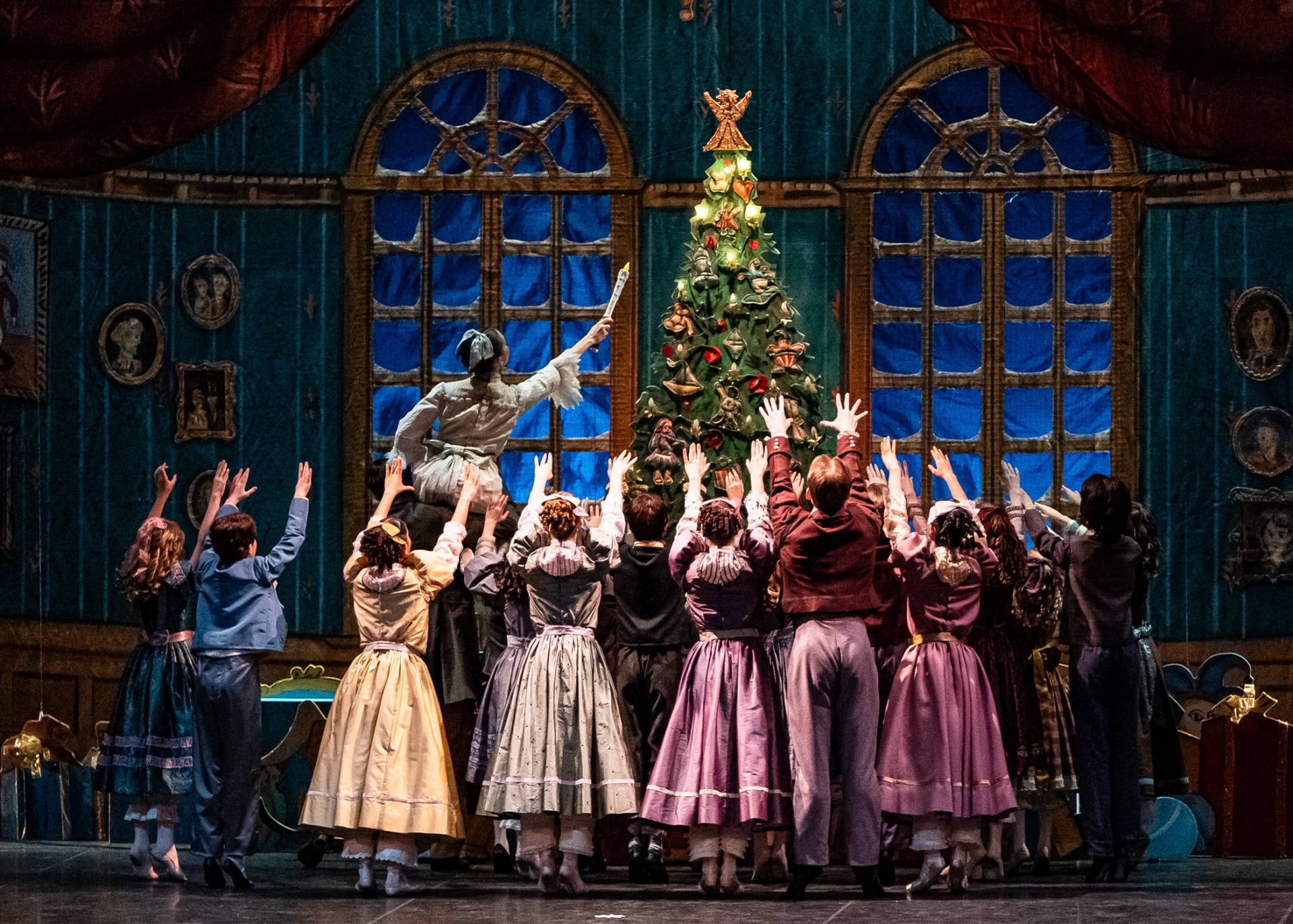 The curtain rises to reveal Herr Drosselmeyer in his workshop preparing for the party at the home of Dr. and Frau Stahlbaum. It’s their annual Christmas Eve Party. The magical and eccentric Herr Drosselmeyer has planned a special surprise for his beloved godchild, Clara Stahlbaum. He presents her with a wonderfully mysterious wooden Nutcracker.
