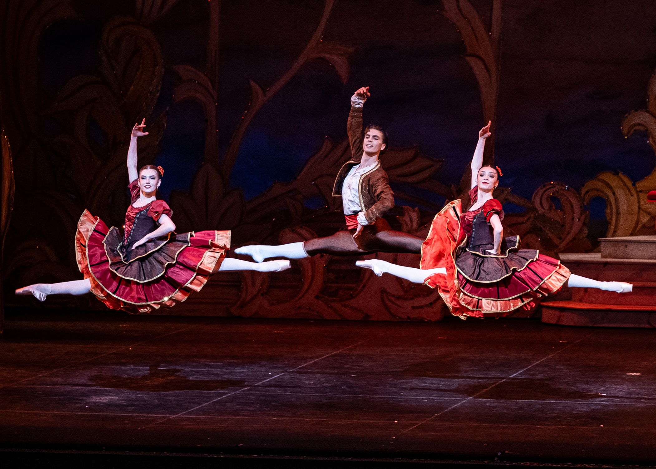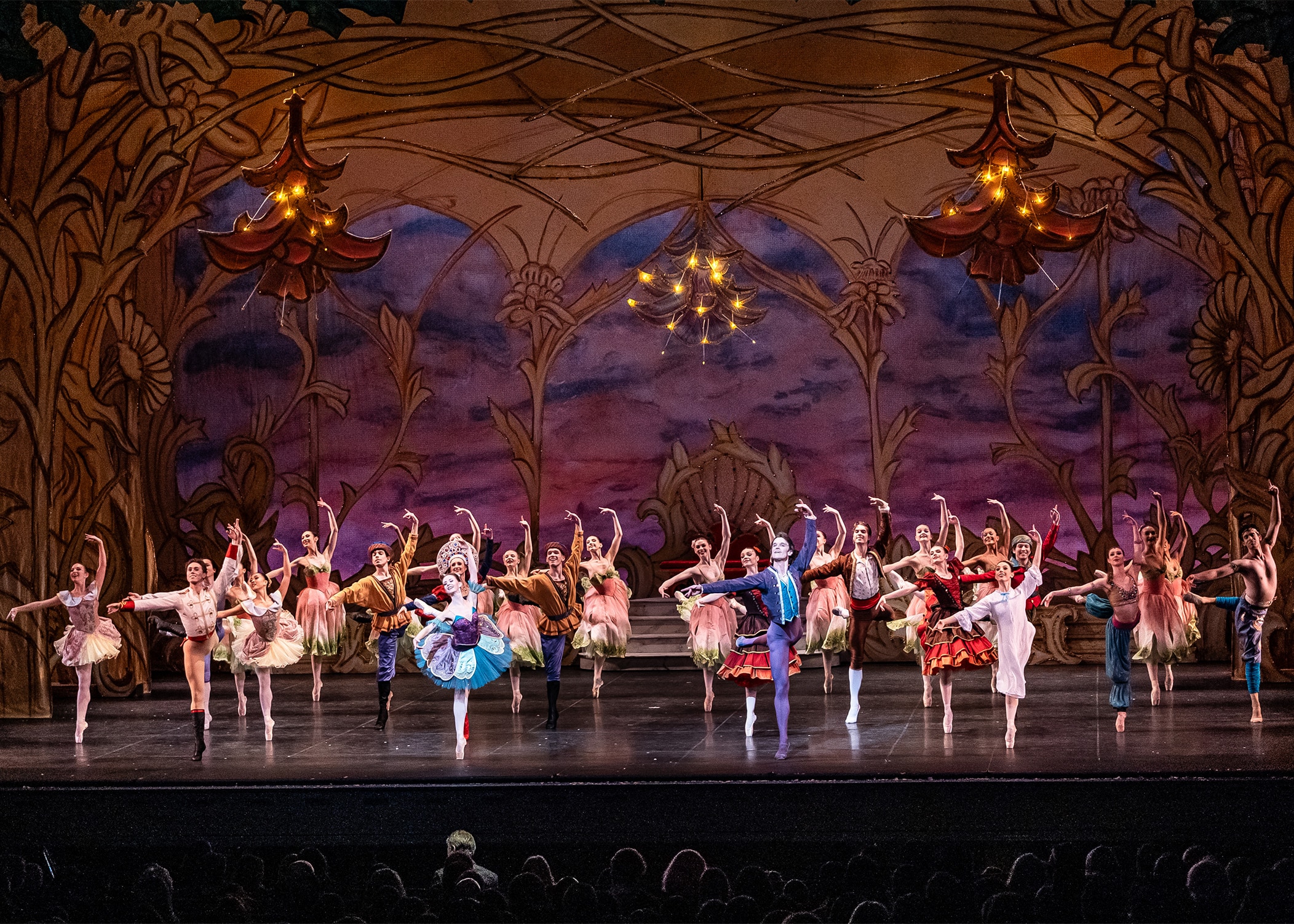 To Clara’s delight and surprise, the Nutcracker is transformed into a handsome young prince, who takes her off on an enchanted journey. He takes her to the Land of the Snow, and then to the beautiful Kingdom of the Sugar Plum Fairy, where Clara is entertained by dances from many lands.